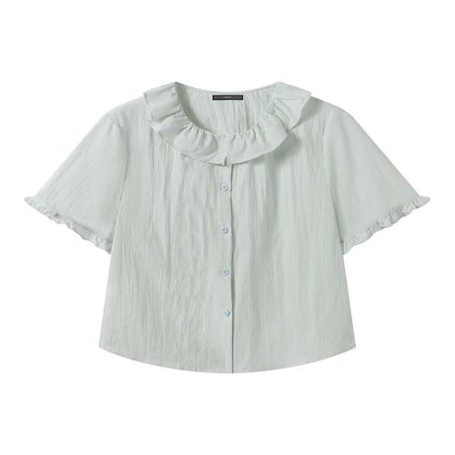 [르샵]프릴 카라 레이스 반팔 블라우스 (DQ2BA005A)