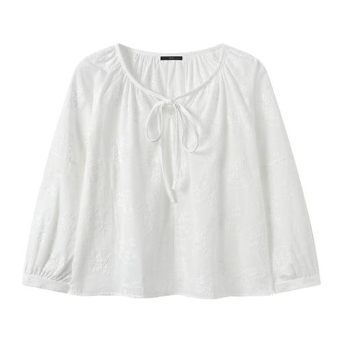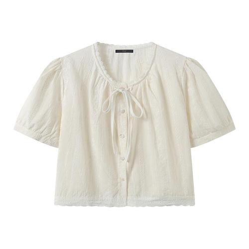 [르샵]플로럴 자수 레이스 리본 블라우스 (DQ2BA004A)