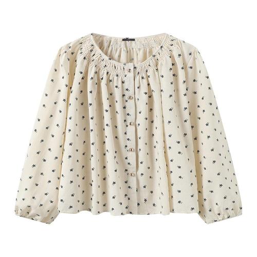 [르샵]플라워 패턴 리본 끈 긴팔 블라우스 (DQ1BA023A)