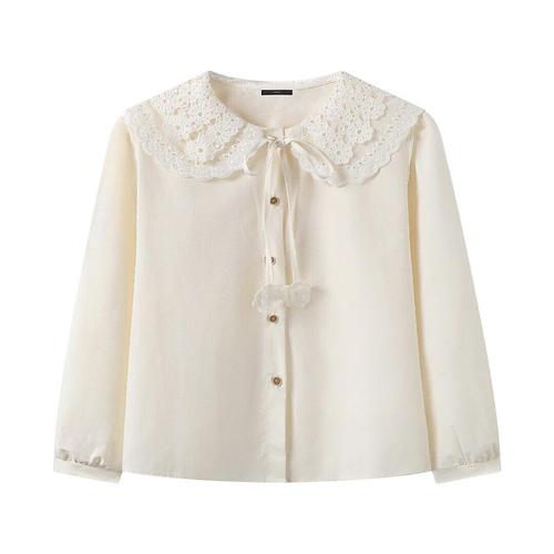 [르샵]레이스 카라 리본 스트랩 긴팔 블라우스 (DQ1BA022A)