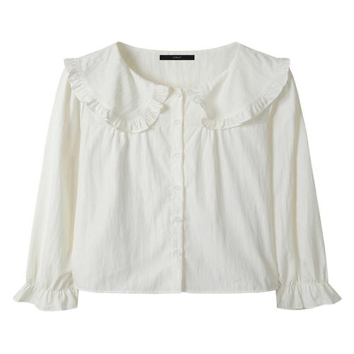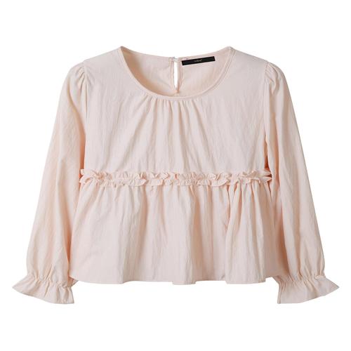[르샵]프릴 라운드넥 버튼업 긴팔 블라우스 (DQ1BA004A)