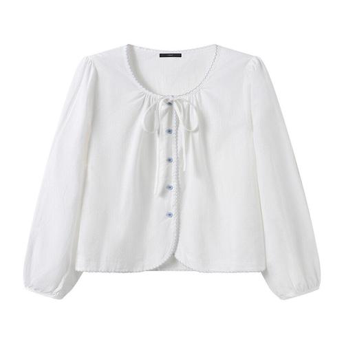 [르샵] 트임 카라넥 사이드 리본 버튼 블라우스 (BQ3BL008A)