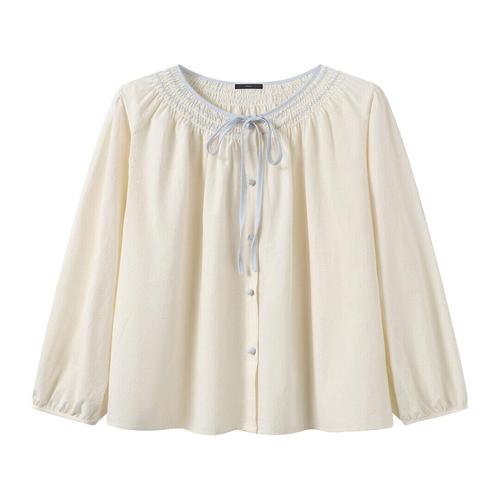 [르샵]리본 스트랩 셔링 긴팔 블라우스 (DQ1BA020A)