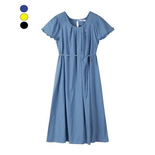 [르샵]라운드넥 데님 플레어 미디 반팔 원피스 (DP2OW024A)