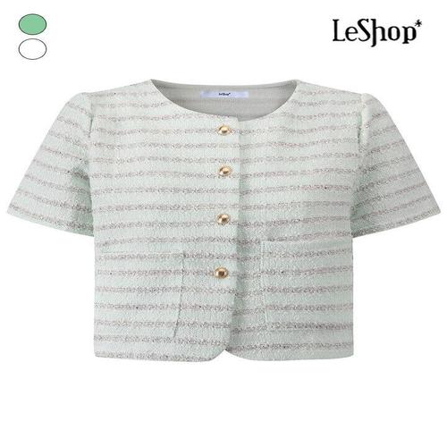 [르샵]골드 버튼 라인 반팔 트위드 자켓 (BQ3JK005A)