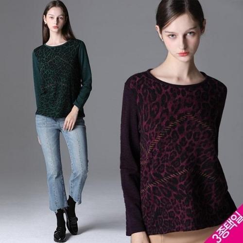 [홈쇼핑방송/르오트(LeOT)] 로레인 기모 레오퍼드 티셔츠