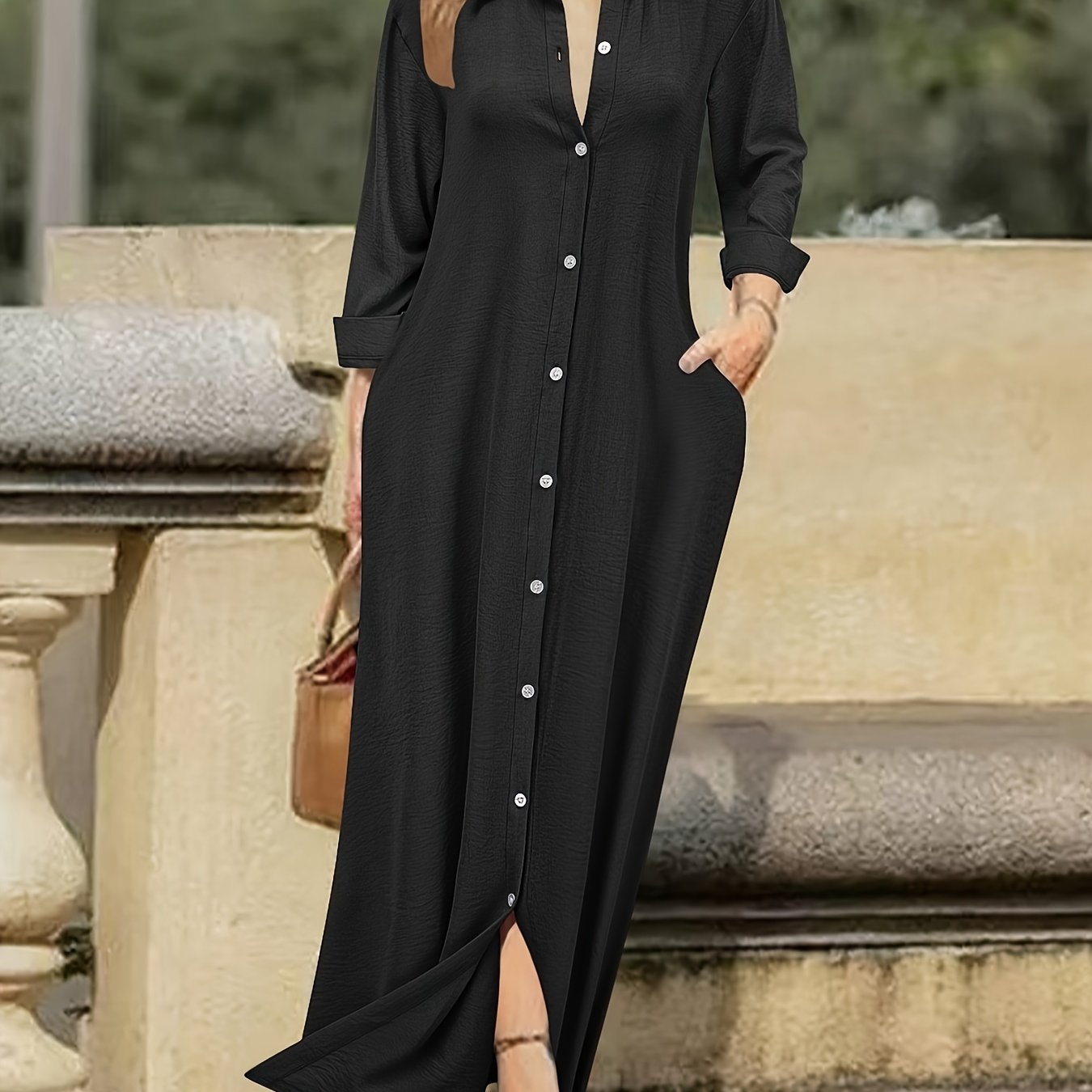 TEMU 여성용 라펠 칼라 버튼 프론트 블라우스 - 솔리드 컬러 롱 슬리브 버튼업 셔츠, 세탁기 사용 가능 겨울 사무복, 전문적인 복장을 위한 라펠 칼라 (가을/겨울) - 미디엄 스트레치 원단