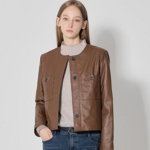 [홈쇼핑방송/르오트(LeOT)] 천연양가죽100 라운드넥 램스킨 레더 자켓-사이즈 55~77까지