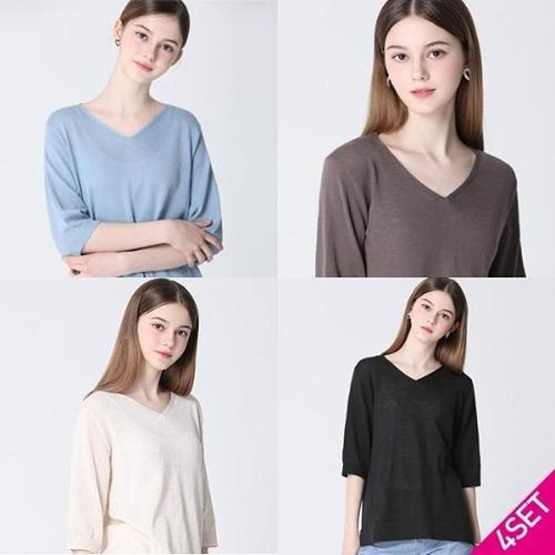 4SET [홈쇼핑방송/르오트(LeOT)] 린넨블렌디드 워셔블 브이넥 반팔니트 4종세트-사이즈 55~99까지