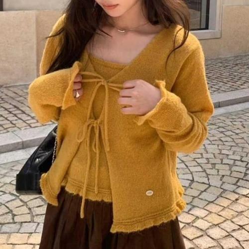 [다잇템][다잇템] 여성 카디건 V넥 사랑스러운 슬리브리스 리본 울혼합 세트_23359584_588872