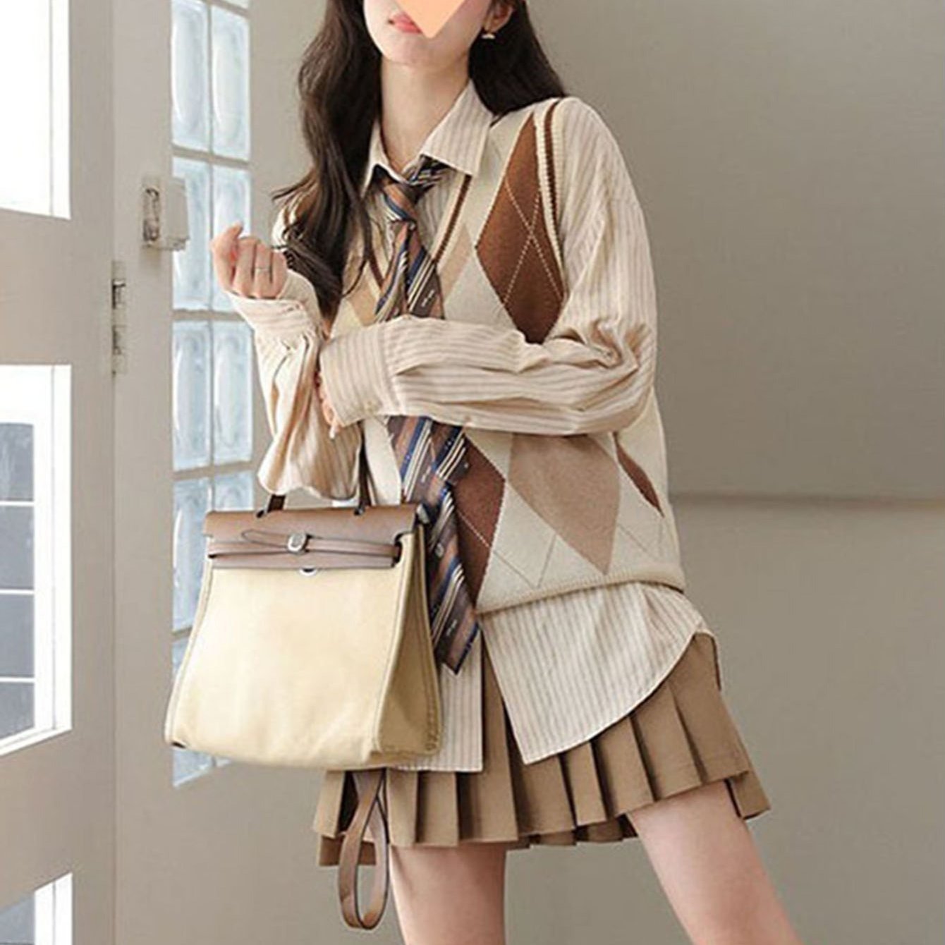 TEMU 여성 봄 데일리 니트조끼 브이넥 니트조끼 간절기 니트조끼 마름모 격자 니트 조끼 여성 패션 캐주얼 민소매니트 상의
