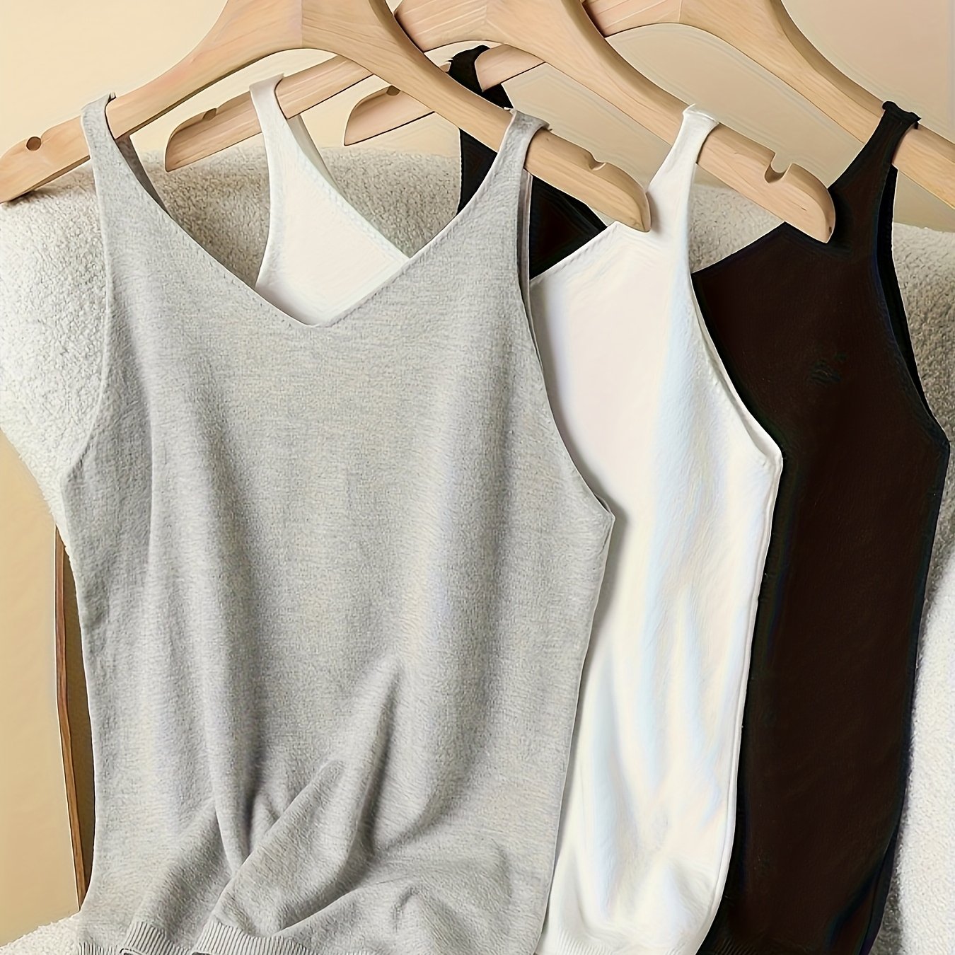 TEMU 여성용 니트 탱크탑 3개 세트 - V넥 민소매 스트레치 솔리드 컬러 상의, 사계절 편안함, 다재다능한 레이어링 필수품, 귀여운 탱크탑, 캐주얼 착용, 우아한 스타일, 편안한 핏