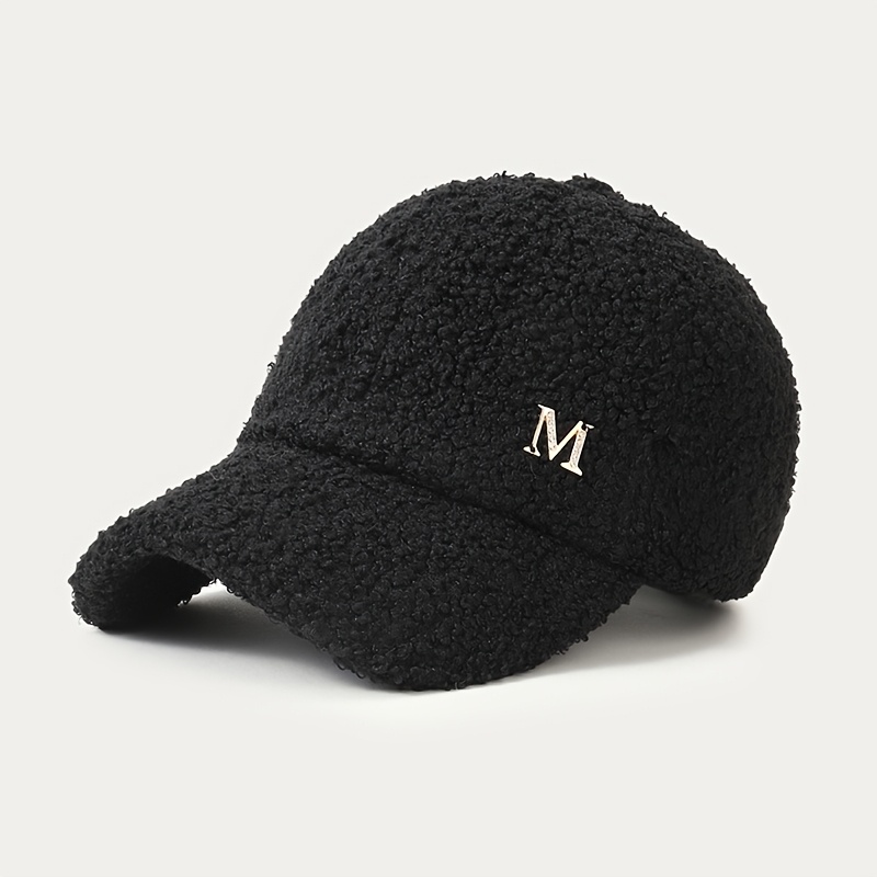 TEMU 여성용 겨울 베이스볼 캡 - 메탈릭 'm' 액센트, 조절 가능한 스냅백 클로저, 소프트 베이지/브라운/블랙/그레이, 가벼우면서 따뜻한 일상/오피스/파티용, 캐주얼 시크한 디자인, 편안한 착용감, 스타일리시 헤드웨어, 패션 애호가를 위한 실외용 모자|스냅백