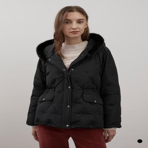 자연 여우털 칼라 루즈핏 오리털 숏 코트 및 재킷 여성용, 화이트, 겨울