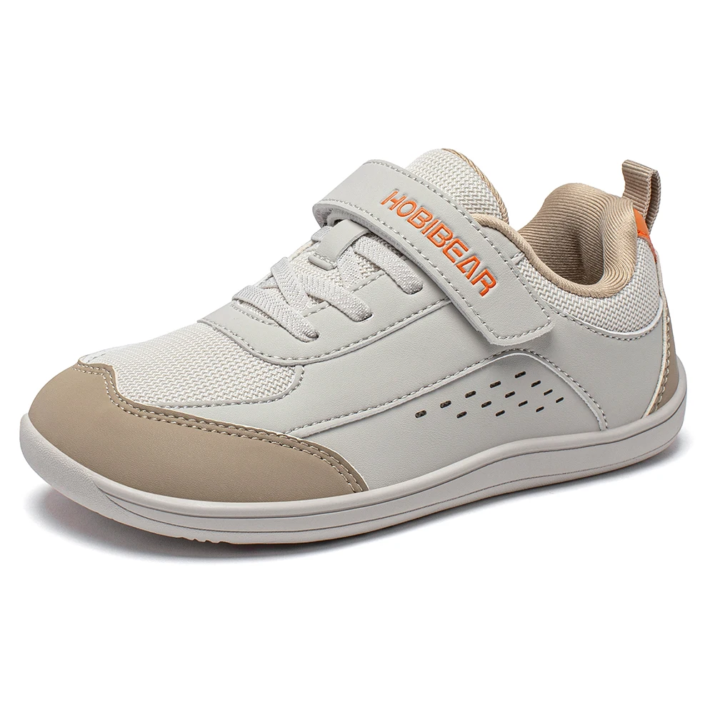 HOBIBEAR 키즈 와이드 발가락 신발 빅 키드 맨발 후크 루프 미니멀리스트 스니커즈 인공 가죽 메쉬 신발