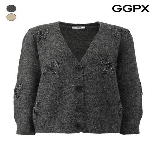 [GGPX]글리터 리본 빅 버튼 니트 가디건 (GPBKG014F)