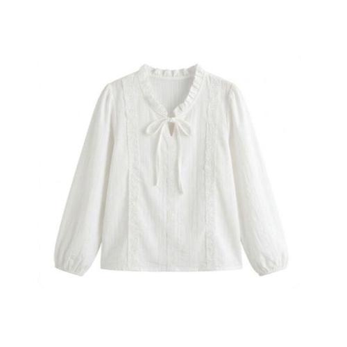 [썬쿠][썬쿠] 넥리본 레이스 장식 블라우스(SN71D3BLS09X)