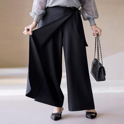 [스타일온미][스타일온미] 피에스 백 밴딩 리본 랩 디자인 세미 와이드 슬랙스 치마바지