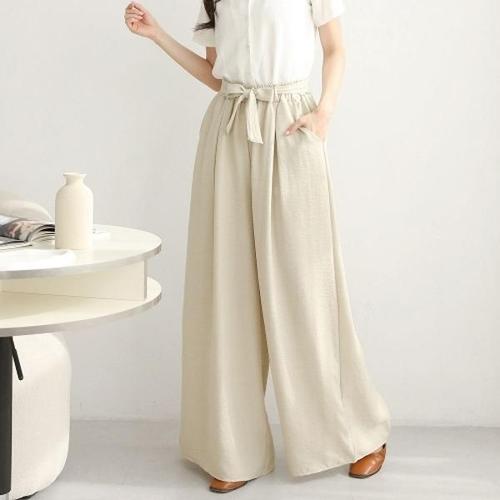 [옷자락] 여자 리본끈 커버업 핀턱 와이드핏 밴딩 봄 슬랙스