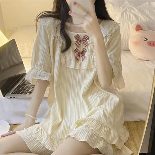 이너퀸 프리수 여성용 레이스 리본 A라인 셔링 U넥 미니 숏 민소매 나시 끈 원피스 슬립 잠옷 홈웨어 이지웨어 6322레이스원피스