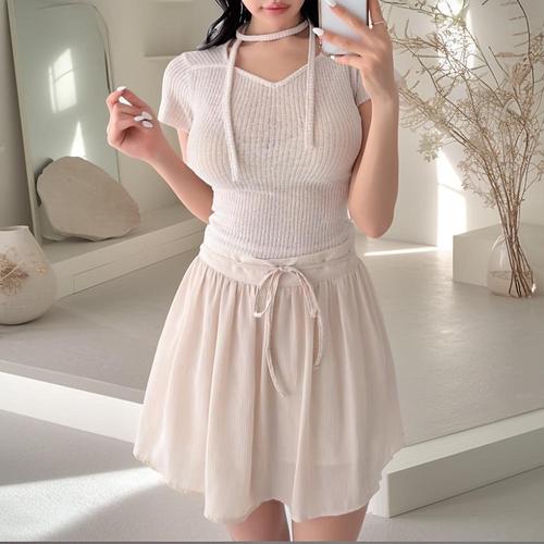 [신상오픈런]여성 속바지 리본스트랩 뒷밴딩 찰랑 미니 스커트