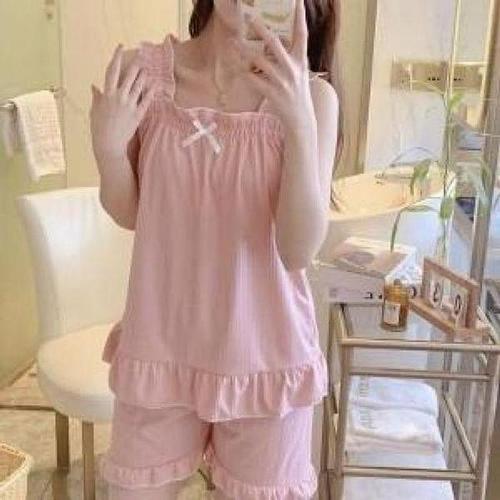 [셀러허브_여성트랜드패션]ONM 여성 여름 나시 잠옷 프릴 리본 파자마 민소매