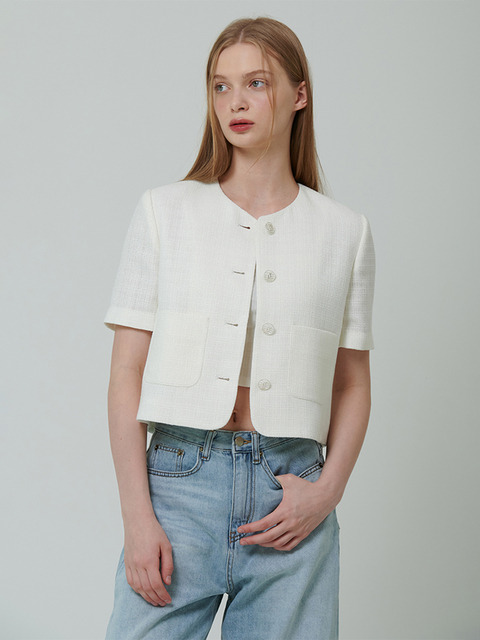 [위시드]노카라 반팔 트위드 자켓 (WIBBJK016)
