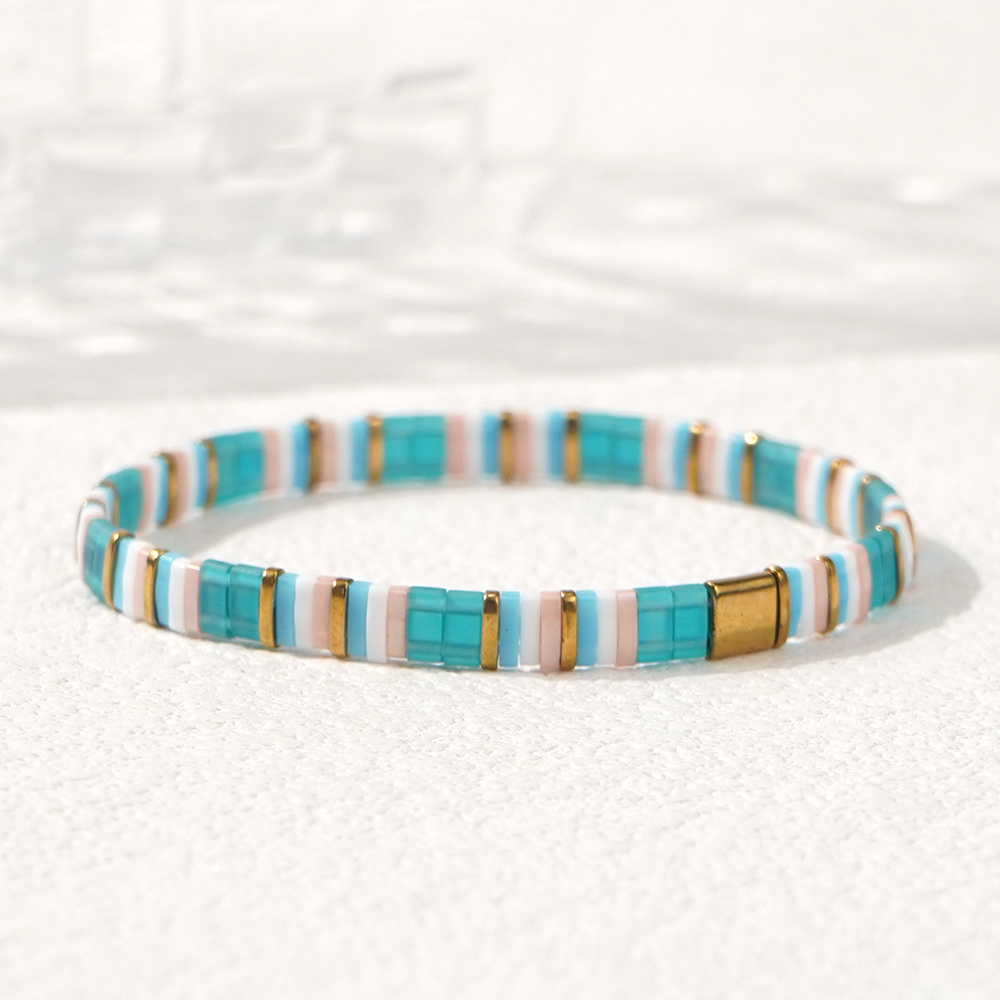 TEMU 스타일 봄/여름 신상 해외 수입 유리 비즈 TILA 탄성 라인 팔찌 주얼리 - 오션 시리즈 해변 서핑 팔찌, 모든 계절에 적합