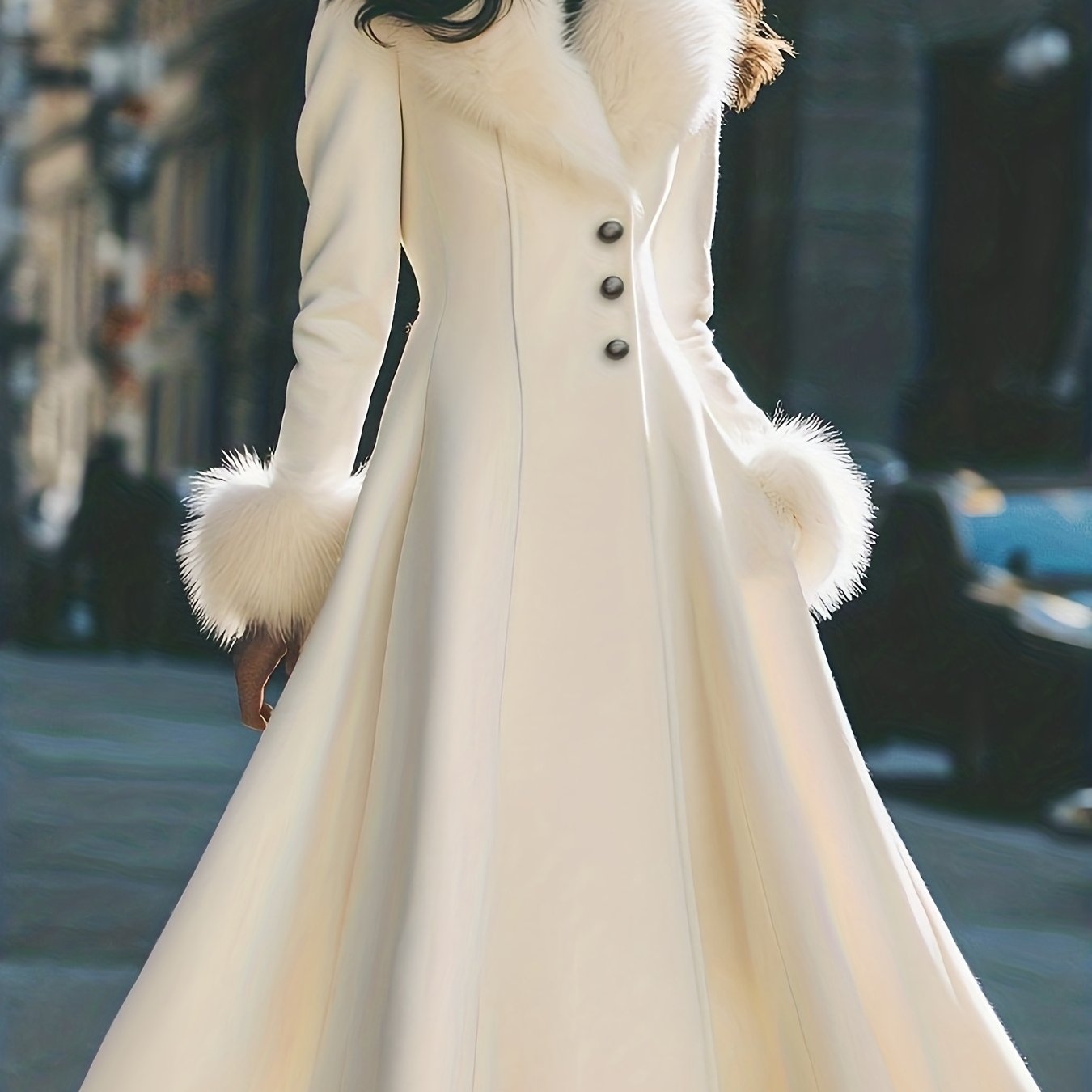 TEMU 여성용 우아하고 세련된 V넥 인조 퍼 코트 - 솔리드 컬러 - 패브릭 코트 - 패셔너블 인조 퍼 겨울 코트