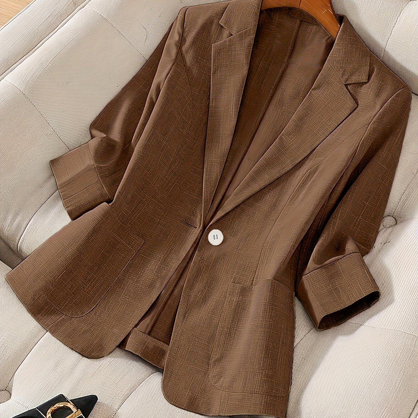TEMU 우아한 여성 캐주얼 | 단색, 레귤러 슬리브, 긴소매, 싱글 버튼 플래킷, 포켓 디테일, 봄/여름/가을에 적합