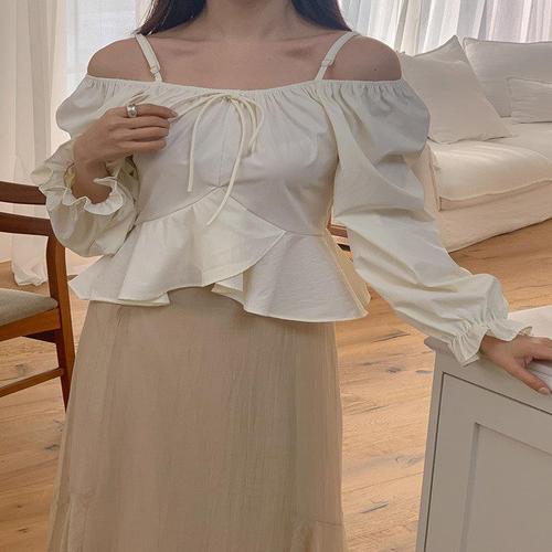 [하젤]캐슬린 오프숄더 러플 면블라우스_S4665