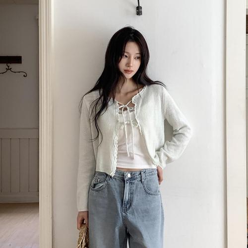 [시크블랙]린루가 레이스 리본 스트랩 러블리 가디건