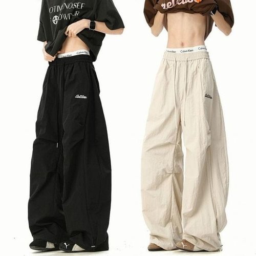 린넨바지 커플 밴딩 린넨 통바지 데일리바지 와 (WFKB53B)