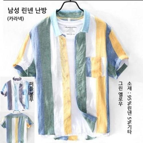 남자 여름 셀럽 버튼카라 린넨 반팔 니트티 SG-KNH-Q010-민트