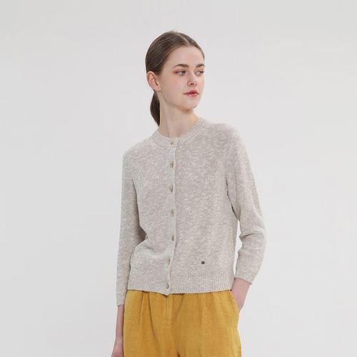 [유닛]리사이클 린넨 혼방 크루넥 니트 가디건 [UFJKCA250N-LIGHT BEIGE]
