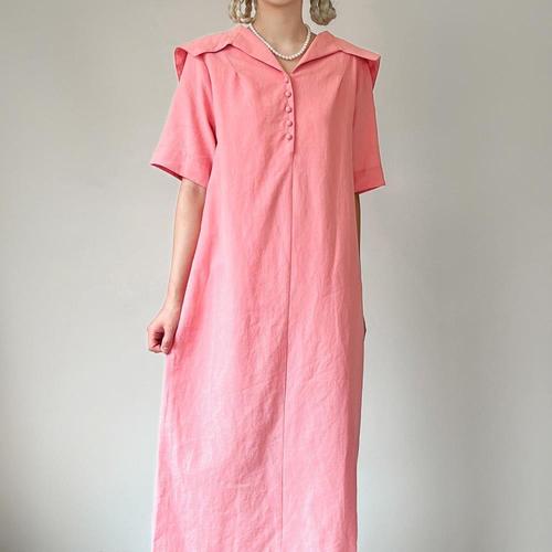 [옷자락] 여자 린넨 분홍원피스 콩단추 세라카라 박시 롱원피스