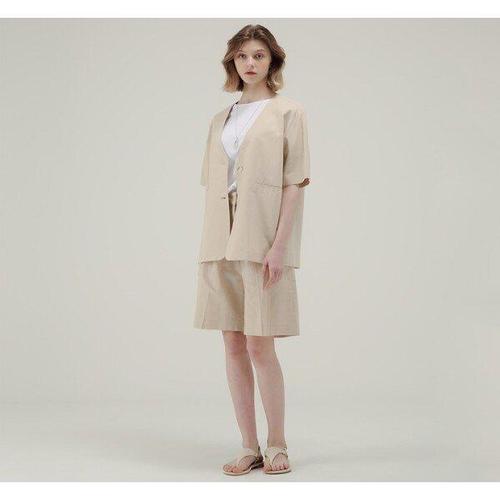 [귈림](귈림)[SET] 루즈핏 브이넥 솔리드 린넨 하프 셋업세트 (GAMJK01GPT02G_BE)