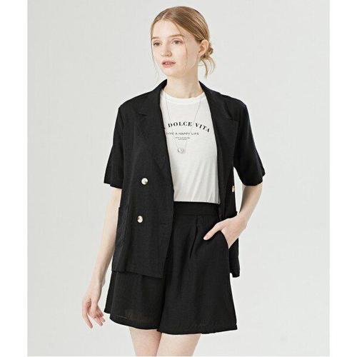 [탱커스]더블 카라 버튼 린넨 자켓 숏 팬츠 셋업 (TW2OP023L0)