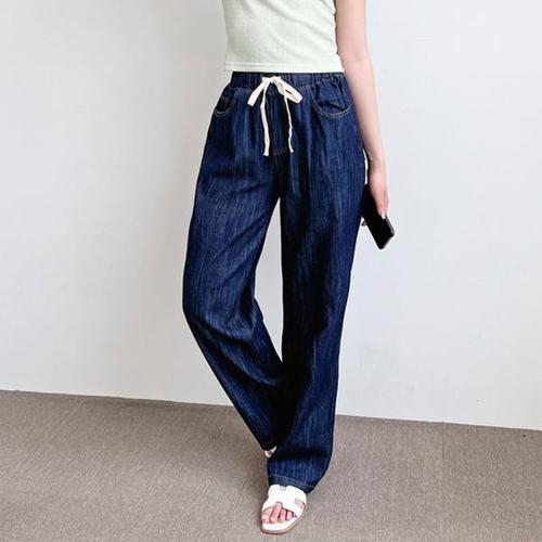 [오너클랜]인기상품 여성 린넨 와이드 청바지 1P 밴딩 데님 데일리 면바지 [WC34FE4_250916]