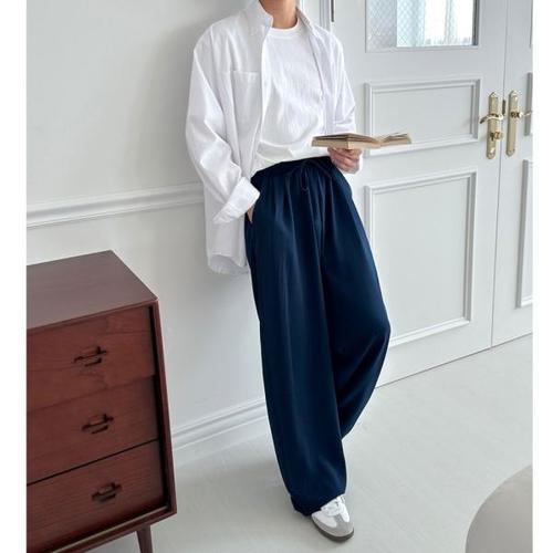 고무줄바지 일상복 데이트룩 코디 남성 린넨 세미 와이드 긴바지