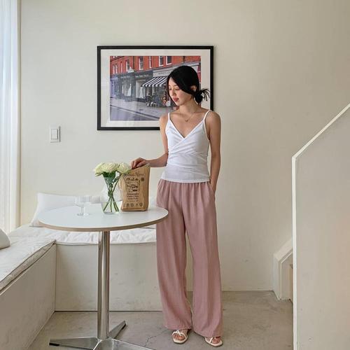 [에이치플러스몰]여성 데일리 베이직 밴딩팬츠 긴바지 패션 여름 린넨 와이드 마바지