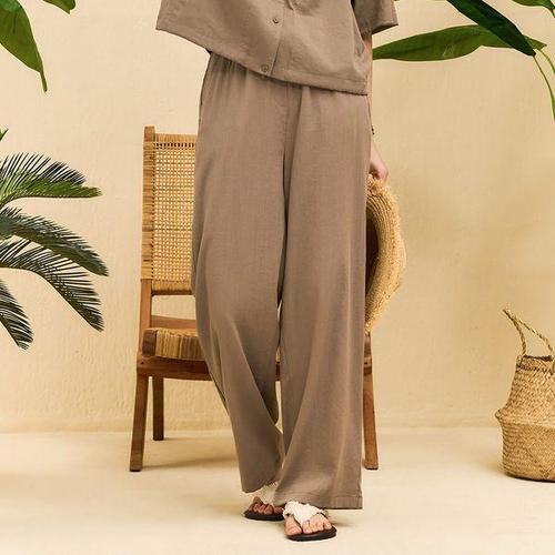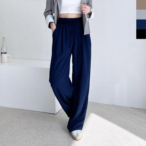 여성 겨울 와이드 팬츠 편안한 뒷밴딩 데일리 린넨팬츠 WFL8QQX