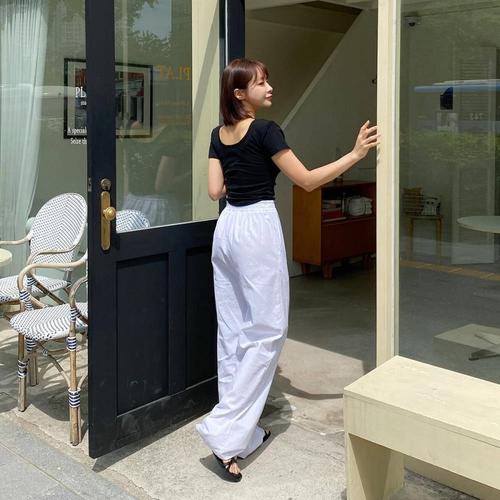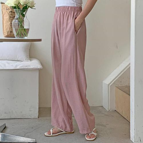 [에이치플러스몰]여성 베이직 디자인 패션 통바지 밴딩팬츠 여름 린넨 와이드 마바지