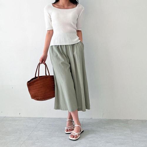 미즈큐즈 / 여름 린넨 밴딩 10부 와이드 팬츠 4color