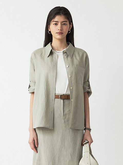 [GGPX]사이드 트임 린넨 솔리드 셔츠 (GQ3SH027F)