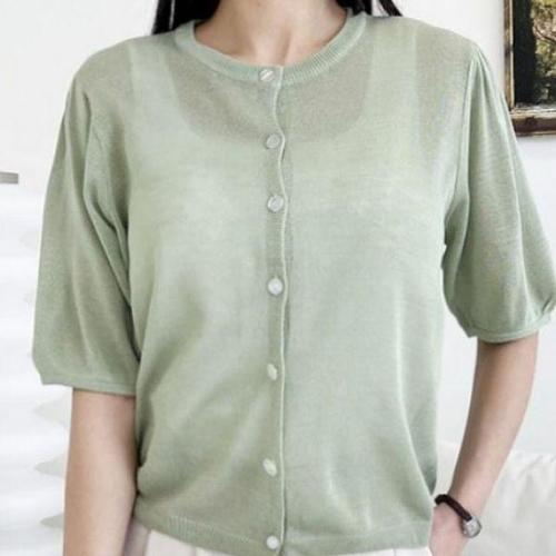 [에이치플러스몰]퍼프 린넨 캐주얼 반팔 니트 필수템 가디건