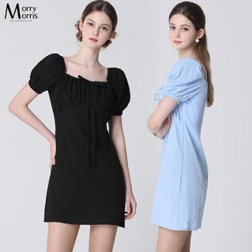 [모리모리스][모리모리스(Morry Morris)] 스퀘어넥 퍼프 린넨 미니 원피스