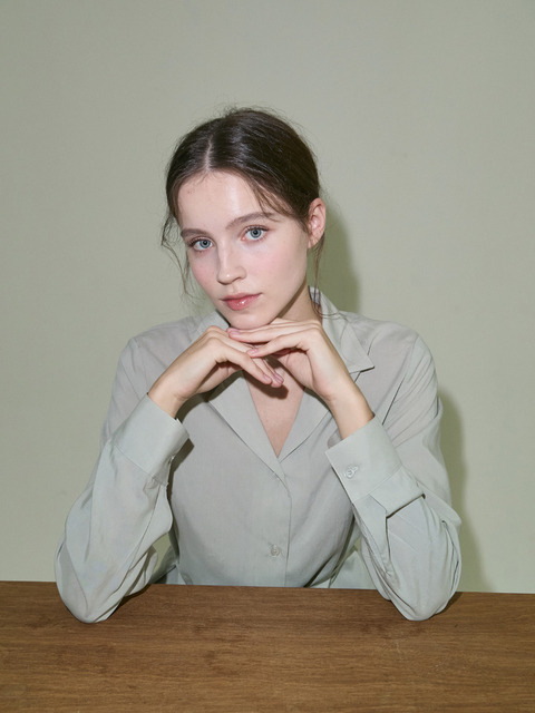 [릴리움] 세렌 오픈 카라 블라우스 _ 라이트 카키
