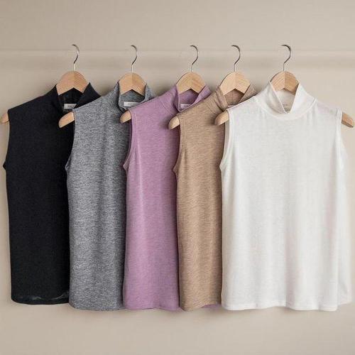 [옷자락] 여자 배색 링거넥 단가라 양기모 베이직핏 스판 티셔츠