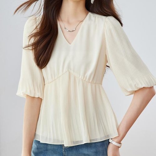 [패션시그널] 머신링클패턴 브이넥 블라우스 4DE8AE